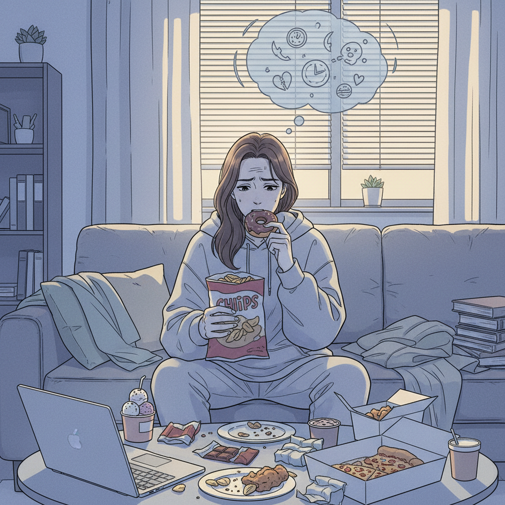 기름지고 바삭하며 달콤한 음식은 쾌락 호르몬인 도파민 분비를 촉진하여 부정적인 감정으로 예민해진 뇌를 빠르게 달래주기도 합니다. 이러한 경험이 반복되면 감정적 공허함을 배고픔으로 착각하게 되고, 결국 신체적 허기와 상관없이 음식에 집착하는 악순환에 빠질 수 있습니다.
