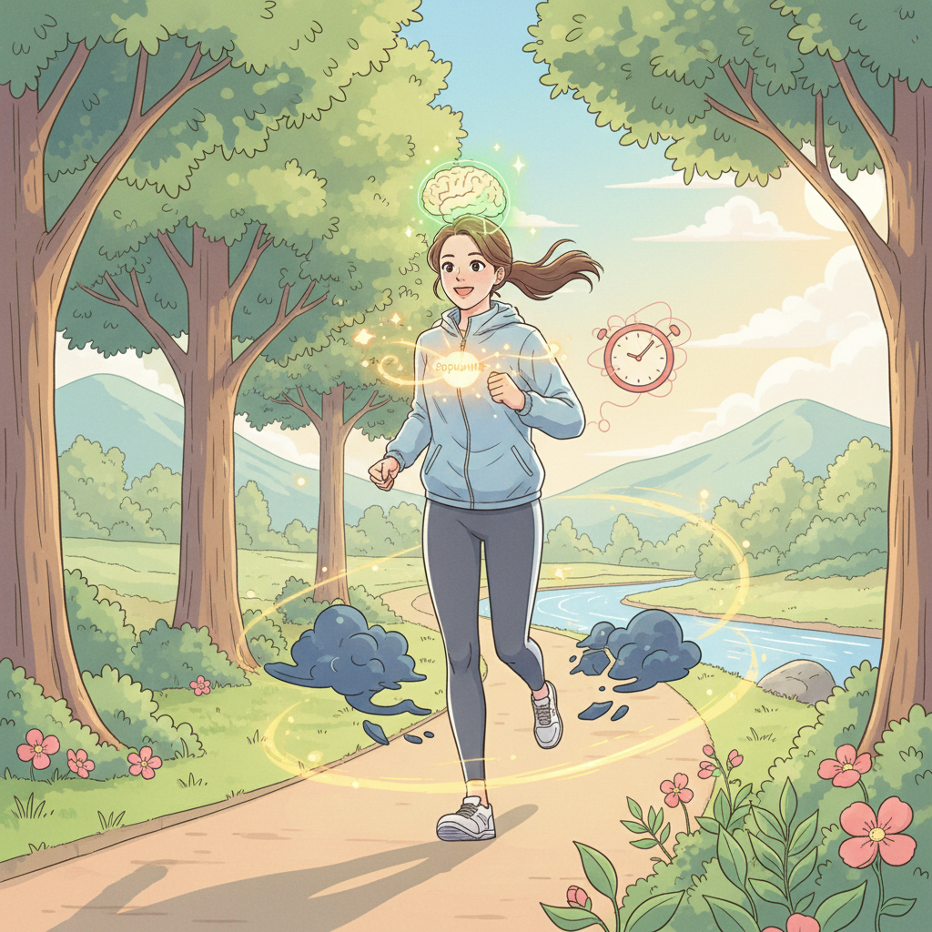 전문가들은 하루 30분에서 1시간 정도의 중강도 유산소 운동을 꾸준히 실천할 것을 권고합니다. 매일 15분 달리기 또는 한 시간 걷기가 우울증 위험을 감소시킨다는 하버드대 연구 결과도 있습니다. 20~30분 정도의 달리기가 즉각적으로 주의력을 개선할 수 있다는 연구 결과도 있으니, 짧더라도 꾸준히 하는 것이 중요합니다.
