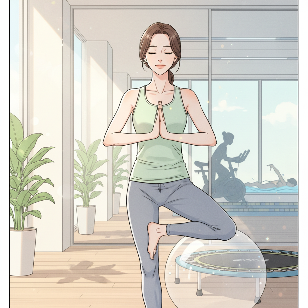 따라서 혼자 집중해서 할 수 있는 유산소 운동과 더불어, 몸의 균형과 마음의 집중을 요구하는 운동을 병행하시면 더욱 좋은 효과를 기대할 수 있습니다.