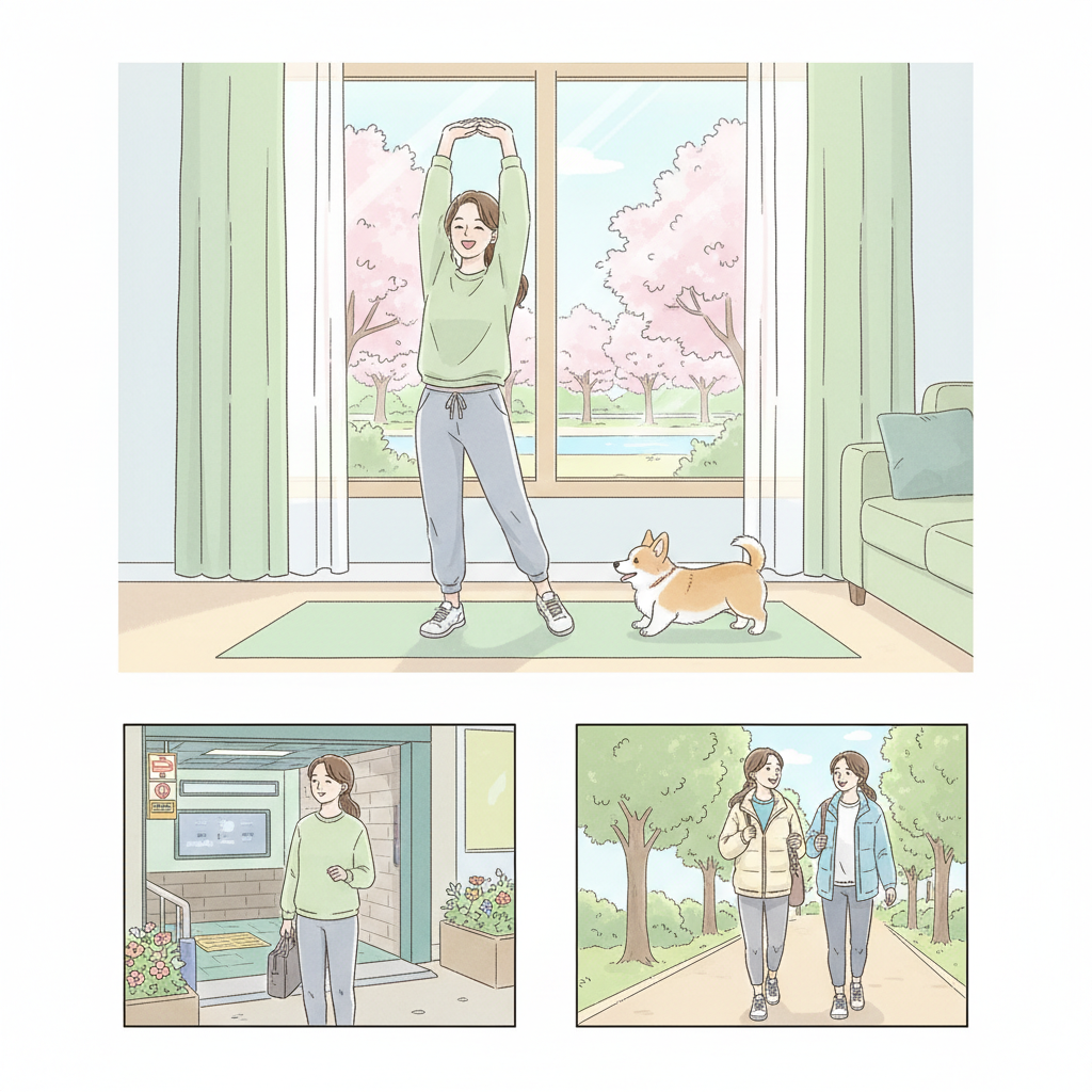 운동을 일상에 잘 통합하기 위해서는 너무 거창하게 시작하기보다 작은 목표부터 세우는 것이 좋습니다. 예를 들어, 퇴근 후 집까지 한 정거장 먼저 내려 걷거나, 점심시간에 가볍게 산책하는 것부터 시작해볼 수 있습니다. 운동을 놀이처럼 즐길 수 있도록 만들고, 가족이나 친구와 함께 운동하는 것도 좋은 방법입니다.