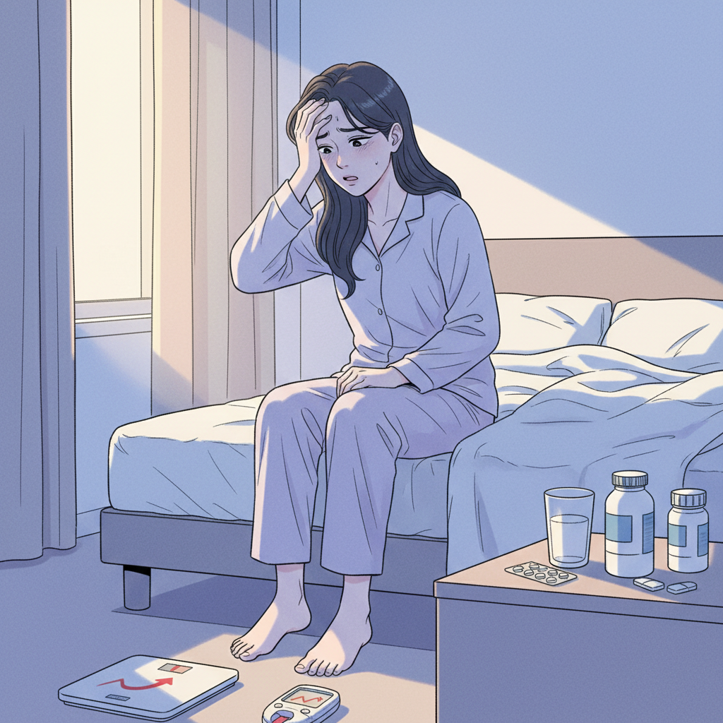 더욱 중요한 것은 대사성 부작용입니다. 쿼티아핀은 체중 증가, 혈당 상승, 고지혈증 등을 유발할 수 있으므로, 복용 중에는 혈당, 지질 수치, 체중 등을 정기적으로 모니터링하는 것이 필수적입니다. 드물지만 심근병증, 심근염, 경련, 신경이완제악성증후군(NMS), 무과립구증, 간 부전과 같은 심각한 부작용도 보고될 수 있습니다. 또한, 고령의 치매 관련 정신병 환자에게 투여 시 사망 위험이 증가할 수 있으므로 사용이 권장되지 않습니다. 약물 중단 시 구역, 구토, 불면과 같은 급성 금단 현상이 나타날 수 있으므로, 의료진과 상의 없이 임의로 중단해서는 안 됩니다.