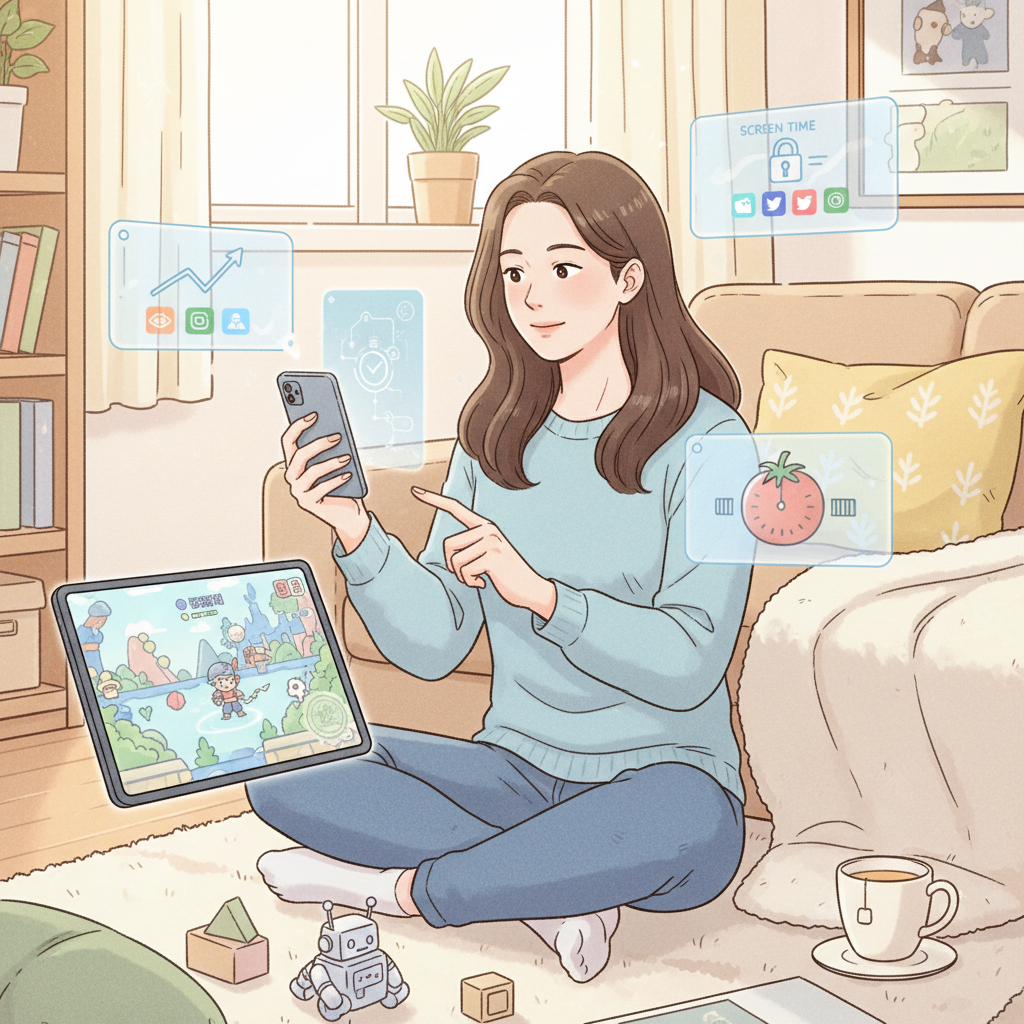 집중력 저하가 의심될 때 스마트폰을 이용해 간단히 자신의 상태를 확인해볼 수 있는 앱들이 나와 있습니다. 스크린 타임 추적, 특정 작업 시 앱 사용 제한, 그리고 포모도로 타이머와 같은 시간 관리 기법을 활용하는 앱들이 대표적입니다.