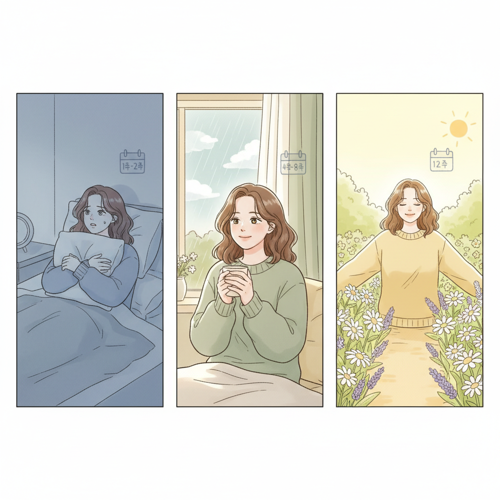 우리 뇌가 약물에 적응하고 신경전달물질 균형을 되찾아 실제 기분이나 에너지 수준에 긍정적인 변화를 일으키기까지는 시간이 필요합니다. 마치 밭에 씨앗을 뿌리고 물을 주어도 바로 열매를 맺지 않고 싹이 트고 자라는 시간이 필요한 것과 비슷합니다.